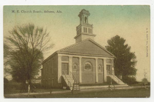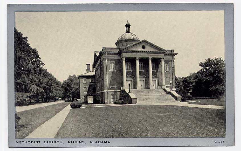 (Photo 1 of Methodist Episcopal Church) The building was originally constructed in 1836 by the First United Methodist Church of Athens, Alabama. In the early 1900's it was renovated and the front of the building was changed. In 1929 the building was sold and renovated again into the Ritz Theater. In 1970 It was again sold and renovated into the Gilbert Furniture Company. In 1990 the building was again sold and renovated into the present day Marion Street Church of Christ. It is located on North Marion Street, one block North of the Court House Square.
