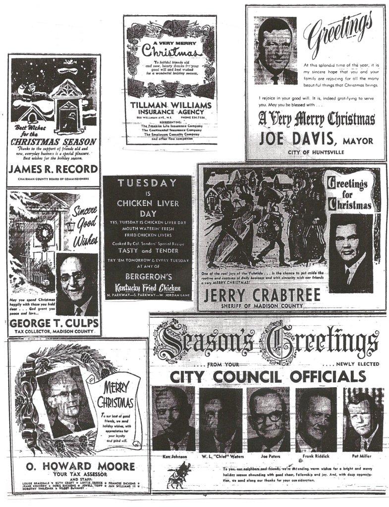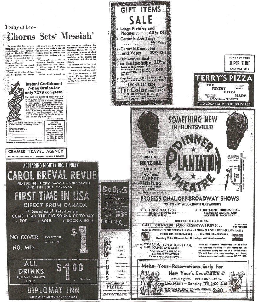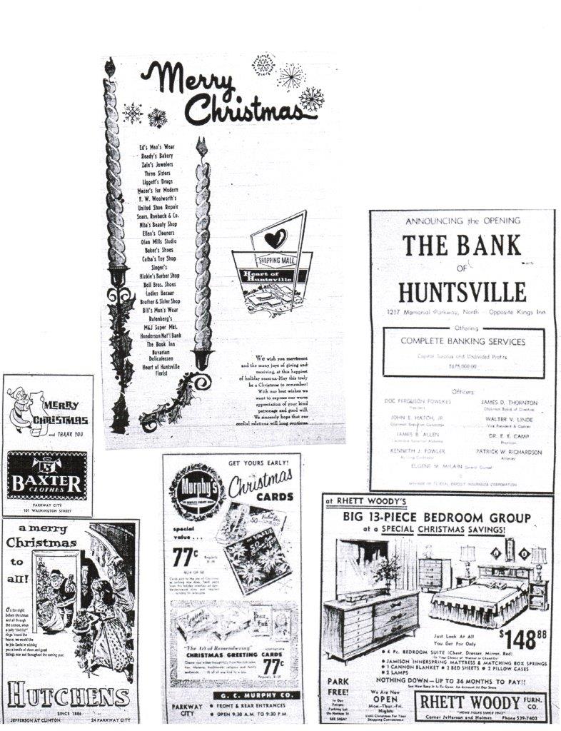 also check these sites out: DISCLAIMER: Huntsville Rewound™ is NOT sanctioned by, nor is it produced under the auspices of any city or company. All graphics are self-produced; photos and other memorabilia found on this page originate from the private collection of the Webmaster and local citizens, and from the high generosity of other, history-loving people (credited throughout the Website/facebook site). All logos, past and present, are the property of their respective owners. They're featured for historical purposes, and the Webmaster does not challenge any ownership rights. Please also get permission before posting any item from an existing website onto the facebook site. When permission is given you will probably need to link to that site in your description. Seeing picture content on a public website such as this does NOT translate to their being in the public domain. Please do NOT post any of these photos into any local retro or historical webpage or facebook page without WRITTEN authorization of the webmaster. Please contact the webmaster with any of these concerns. Huntsville Rewound™ is a trademarked entity (since 2009) Thank You