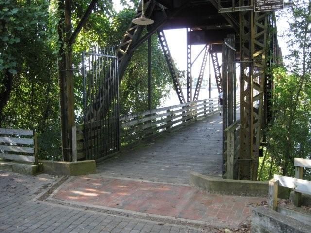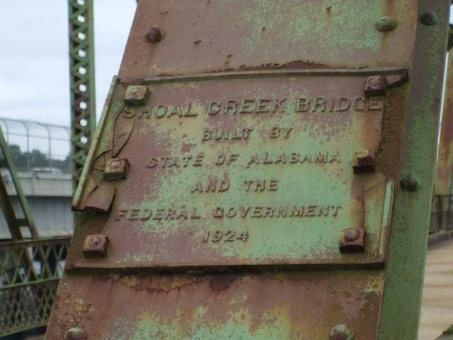 The old Tennessee River Bridge in 2009 (cart/buggy/car level) -picture with trolley is above State Line near Cherokee AL (Old Memphis Pike runs behind sign) Ivy Green (Childhood Home of Helen Keller)
