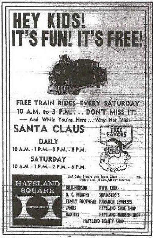 sesquicentennial celebration in 1955. In the 1960s, children could take free rides in the parking lot of Haysland
